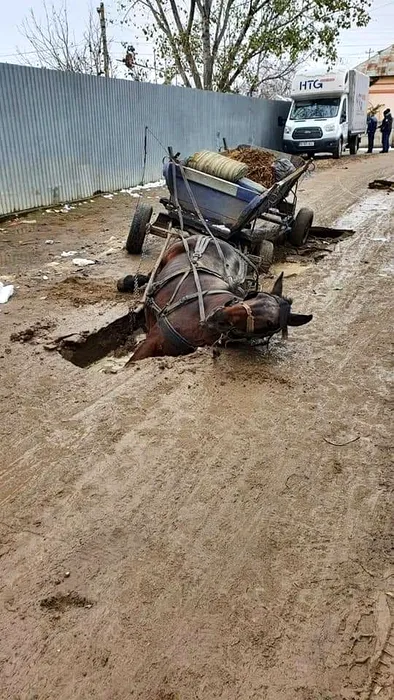 România lucrului bine făcut. Un cal a căzut într-o groapă apărută în mijlocul drumului! S-a întâmplat lângă București (Galerie FOTO)