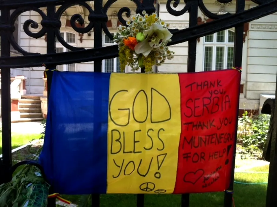 Românii au adus flori și mesaje de mulțumire la Ambasada Serbiei din București. FOTO EXCLUSIV