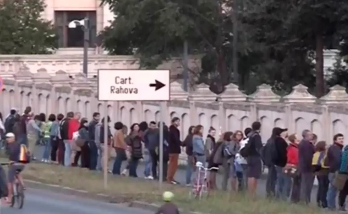 Roșia Montană. Protestatarii au făcut lanț uman în jurul Casei Poporului. Mutați în Piața Universității, au anunțat că nu vor merge la comisia din Parlament. FOTO