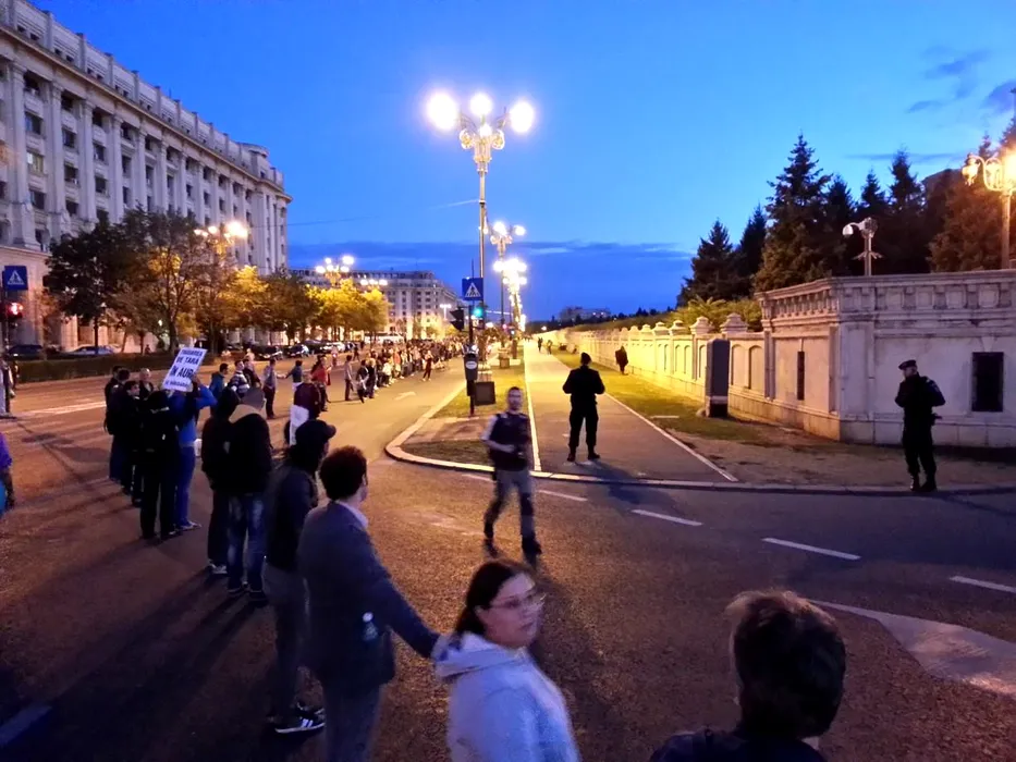Roșia Montană. Protestatarii au făcut lanț uman în jurul Casei Poporului. Mutați în Piața Universității, au anunțat că nu vor merge la comisia din Parlament. FOTO