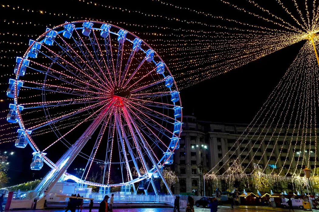 FOTO VIDEO | S-a deschis Târgul de Crăciun din București. Cum arată roata panoramică din Piața Constituției