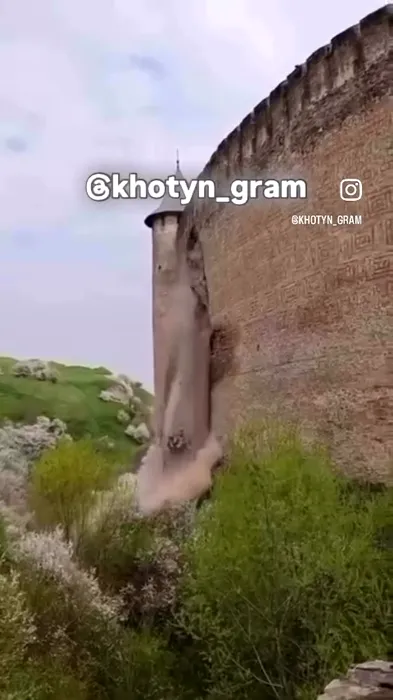 S-a prăbușit o parte din zidul Cetății Hotin din Ucraina. Fortăreața medievală a aparținut lui Ștefan cel Mare