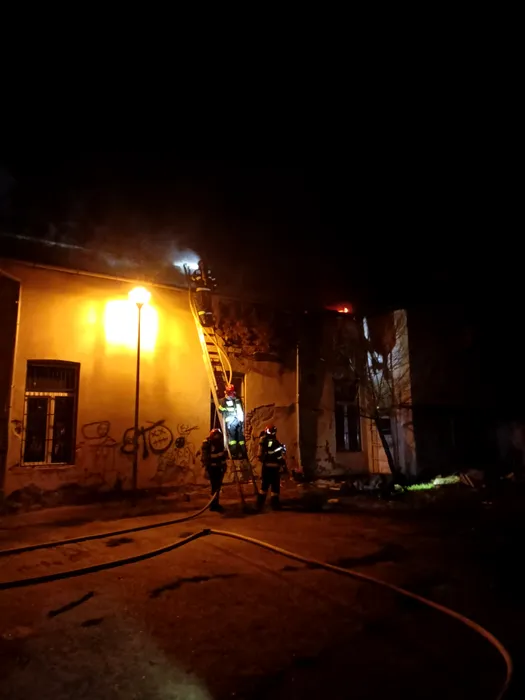 FOTO-VIDEO | Incendiu violent: O sală de sport din centrul orașului Alba Iulia s-a făcut scrum / Pompierii au reușit să salveze Tribunalul