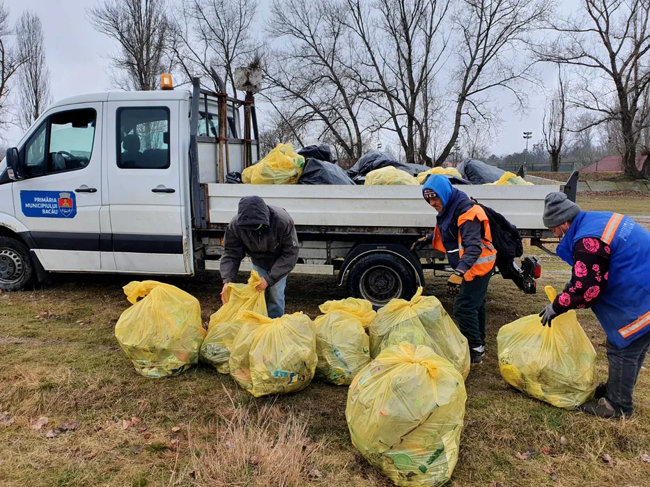 Salariații de la SGA Bacău au adunat peste 7 tone de gunoaie aruncate îl albia râurilor din județ