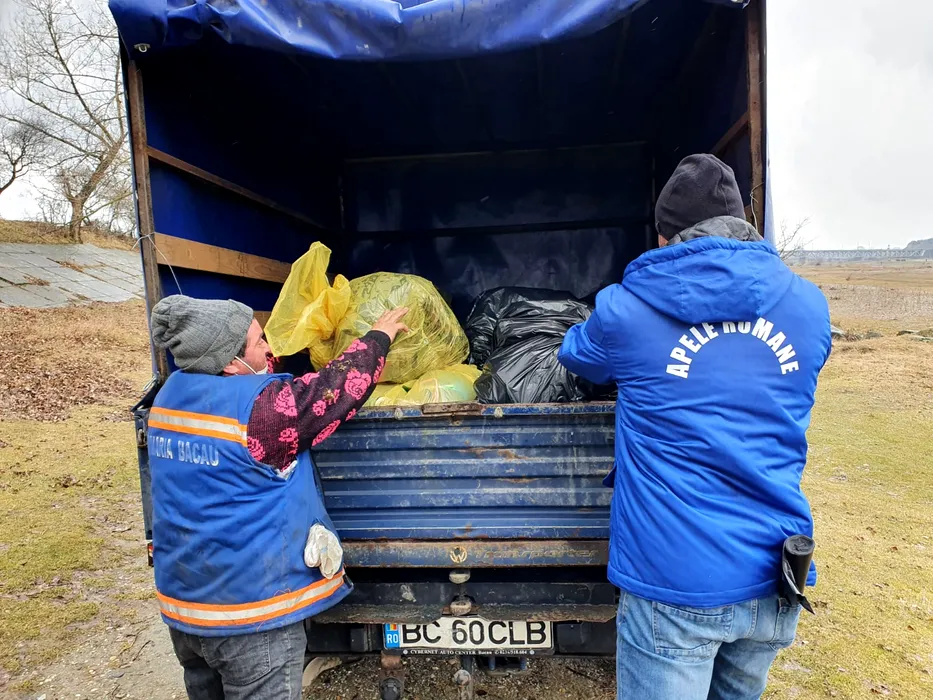 Salariații de la SGA Bacău au adunat peste 7 tone de gunoaie aruncate îl albia râurilor din județ