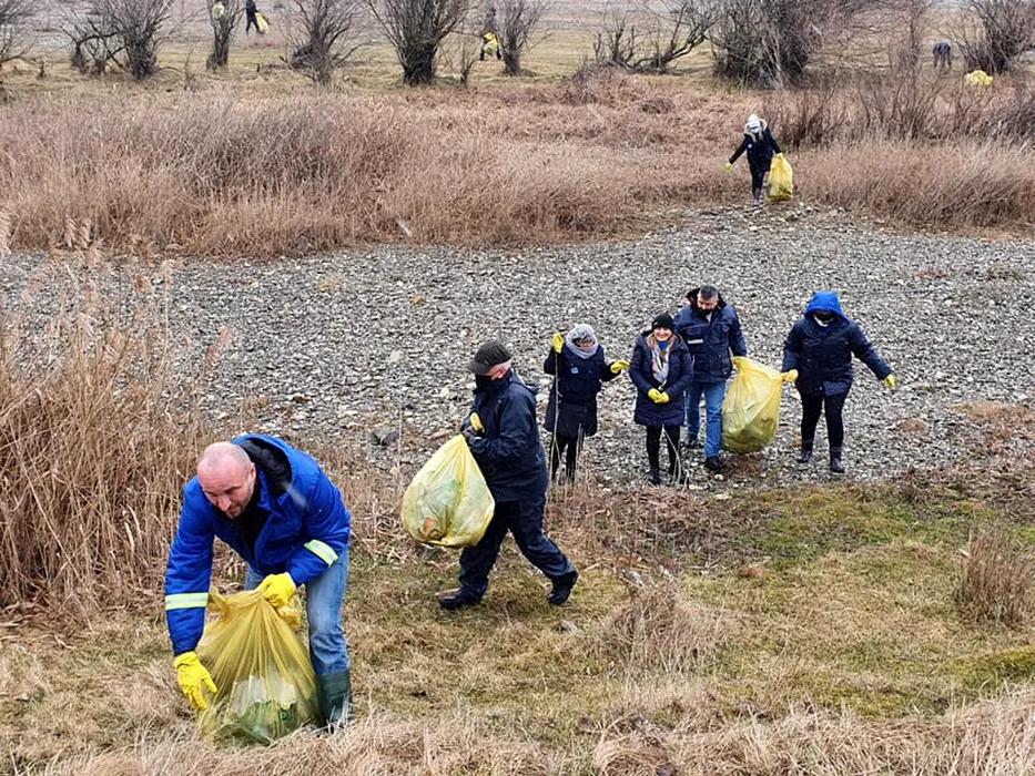 Salariații de la SGA Bacău au adunat peste 7 tone de gunoaie aruncate îl albia râurilor din județ