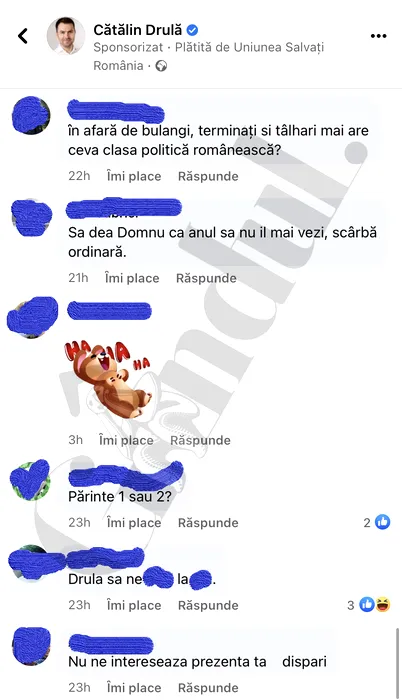 Comentarii la postarea lui Cătălin Drulă pe Facebook
