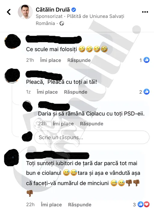 Comentarii la postarea lui Cătălin Drulă pe Facebook