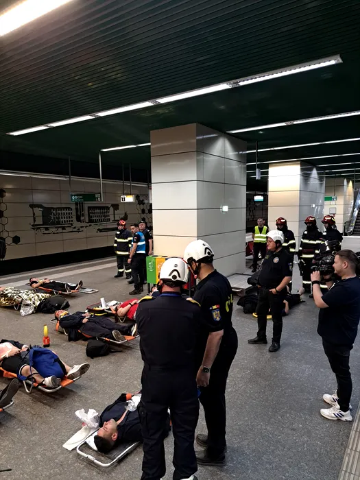 Salvatorii DSU și echipe ale ISC au continuat exercițiul „SEISM 2025” la metrou. O garnitură de tren a fost prinsă sub dărâmături
