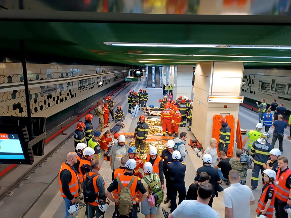 Salvatorii DSU și echipe ale ISC au continuat exercițiul „SEISM 2025” la metrou. O garnitură de tren a fost prinsă sub dărâmături