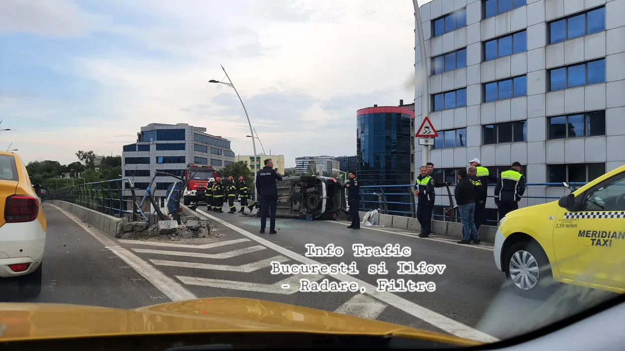 Șapte femei au fost rănite, după ce mașina în care se aflau s-a RĂSTURNAT pe Pasajul Basarab din Capitală