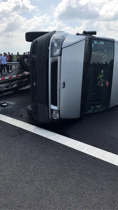 Șapte persoane rănite după ce două microbuze și un autoturism s-au ciocnit. Circulația este blocată
