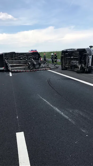 Șapte persoane rănite după ce două microbuze și un autoturism s-au ciocnit. Circulația este blocată