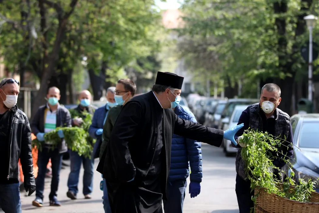 GALERIE FOTO: SĂRBĂTORI. Daniel Tudorache, primarul Sectorului 1, și un preot au împărțit ramuri de salcie bucureștenilor: Căminul fiecărui creștin va fi propria bazilică – FOTO