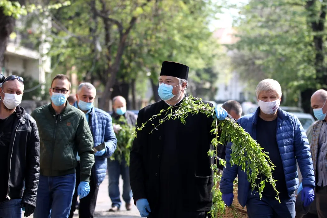 GALERIE FOTO: SĂRBĂTORI. Daniel Tudorache, primarul Sectorului 1, și un preot au împărțit ramuri de salcie bucureștenilor: Căminul fiecărui creștin va fi propria bazilică – FOTO