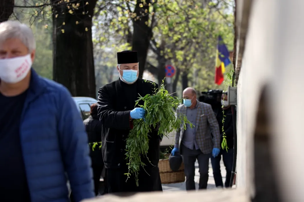 GALERIE FOTO: SĂRBĂTORI. Daniel Tudorache, primarul Sectorului 1, și un preot au împărțit ramuri de salcie bucureștenilor: Căminul fiecărui creștin va fi propria bazilică – FOTO