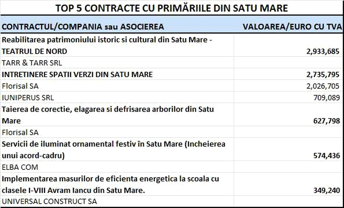 SATU MARE. Unde au mers banii publici în 2014. Topul firmelor care au contracte locale cu statul