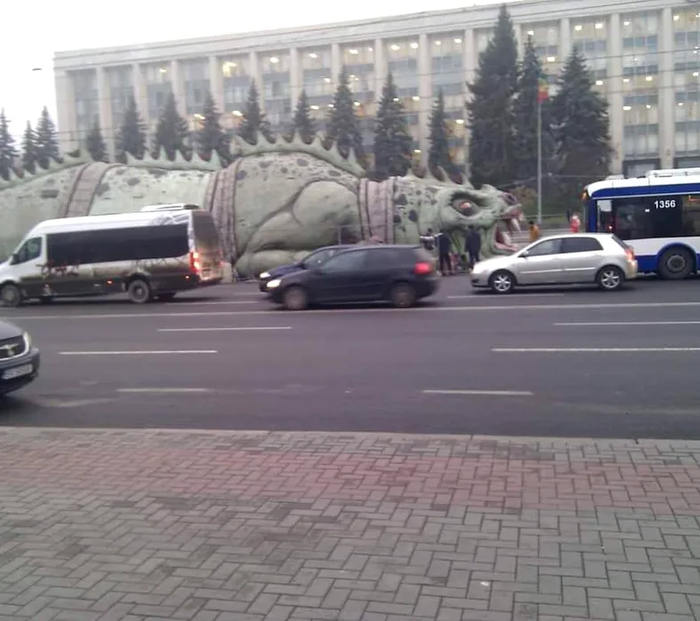 Scandal în Chișinău, după ce o șopârlă uriașă a apărut lângă bradul de Crăciun / Primarul cere demisii – FOTO