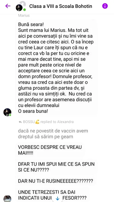 Scandal într-o școală din Iași. Profesorul antivaccinist s-a pierdut cu firea: „Marș, mă tâmpitule”