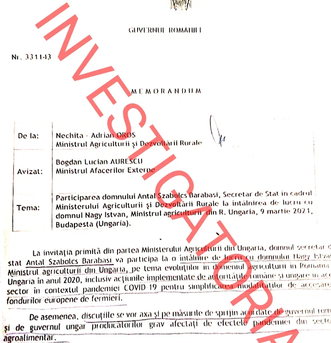 Scandal la Ministerul Agriculturii! Un secretar de stat a plecat într-o vizită oficială în Ungaria cu documente false