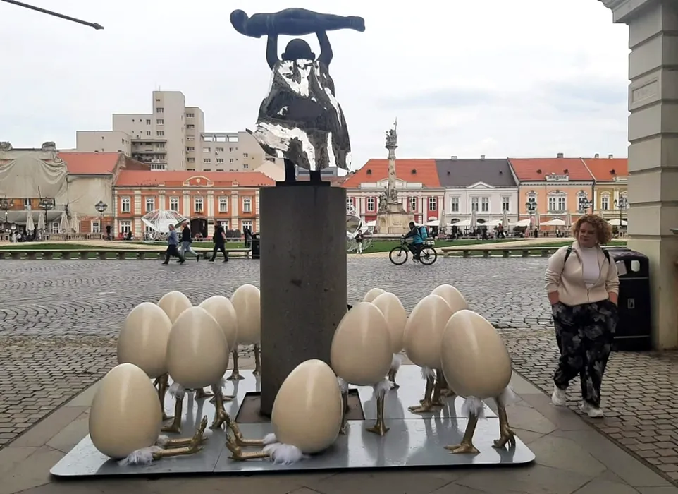 Scandal la Timișoara. Artistul care a creat statuia pe care Fritz a montat „ouăle cu picioare” de peste 500 de euro bucata somează Primăria să le îndepărteze