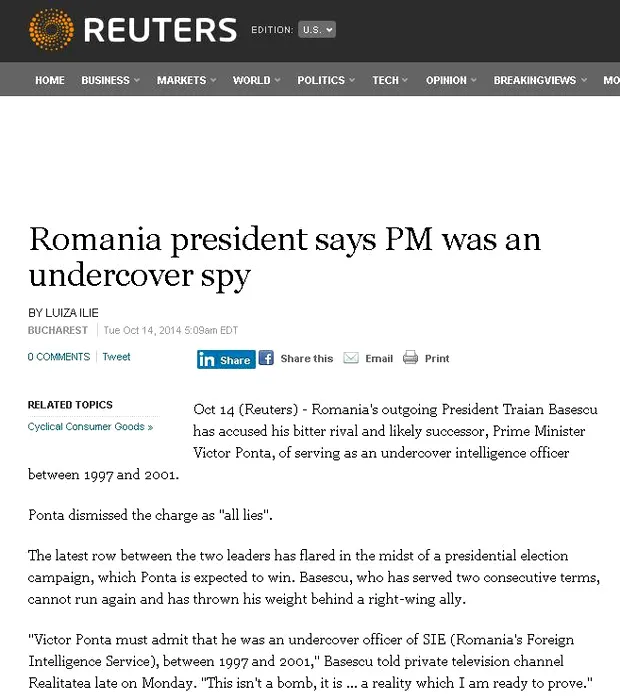 Scandalul „Ponta, ofițer acoperit” ajunge în presa internațională: „Așteptați-vă la intensificarea zgomotului politic din România”
