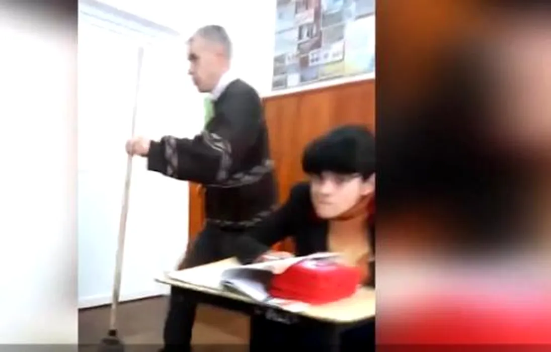 Scene BIZARE într-o școală din județul Suceava. Un elev este FUGĂRIT cu MOPUL de profesorul de franceză