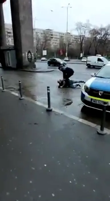 Scene ca în filme la Gara de Nord! Polițiștii „au dat de pământ” cu trei indivizi care consumau alcool pe stradă / VIDEO cu impact emoțional
