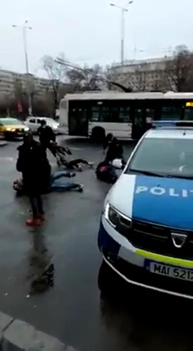 Scene ca în filme la Gara de Nord! Polițiștii „au dat de pământ” cu trei indivizi care consumau alcool pe stradă / VIDEO cu impact emoțional