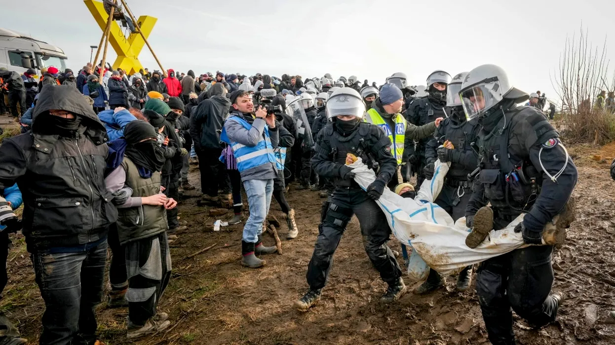 Scene comice în Lützerath! În încercarea de a alunga activiștii dintr-un sat german, ofițerii de poliție s-au împotmolit în noroi până la genunchi