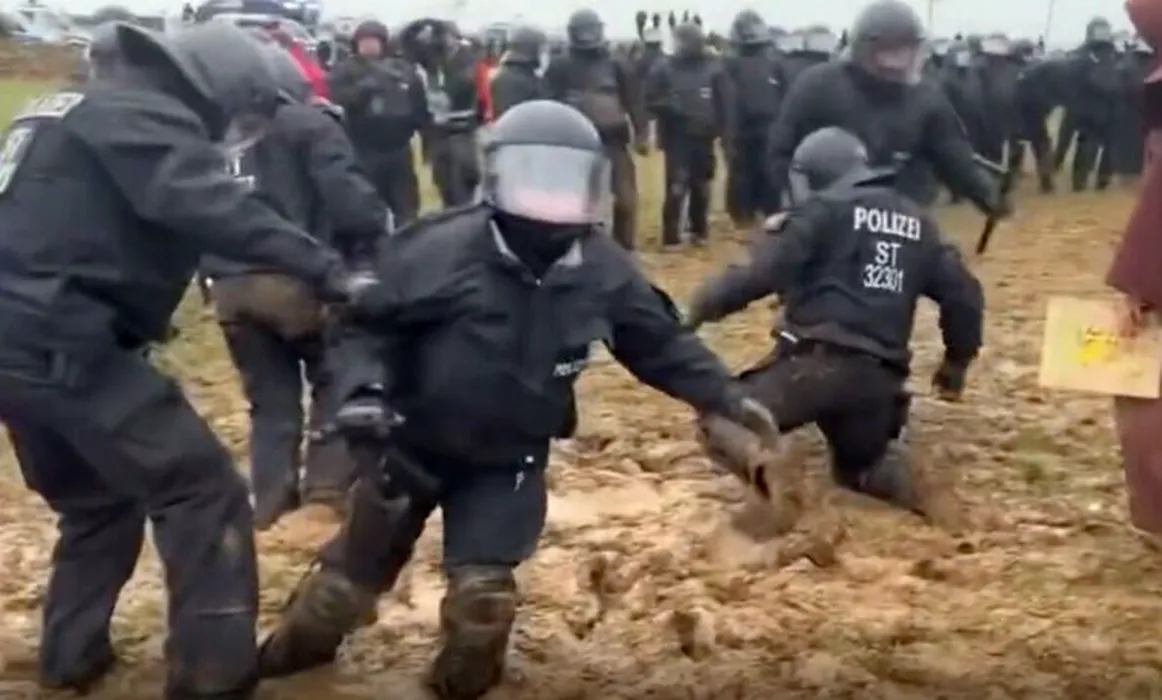 Scene comice în Lützerath! În încercarea de a alunga activiștii dintr-un sat german, ofițerii de poliție s-au împotmolit în noroi până la genunchi