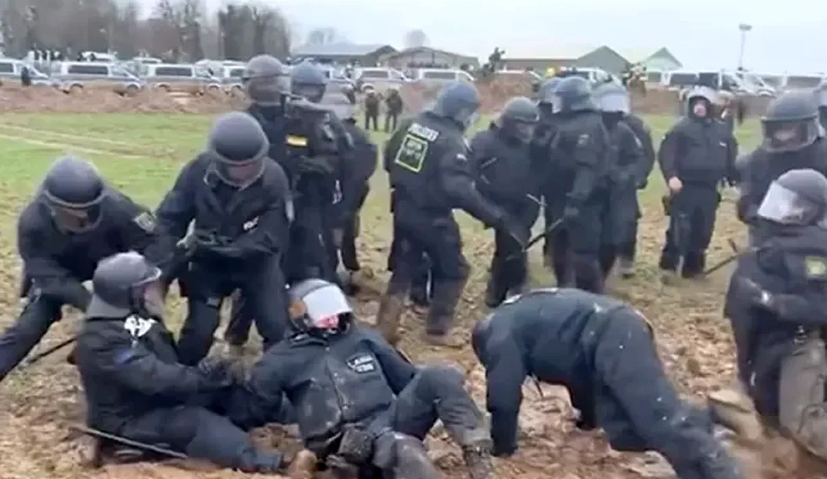 Scene comice în Lützerath! În încercarea de a alunga activiștii dintr-un sat german, ofițerii de poliție s-au împotmolit în noroi până la genunchi