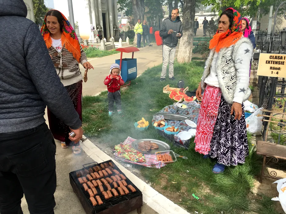 Scene „de sărbătoare” într-un cimitir din Ploiești. Motivul pentru care romii au încins grătarele printre morminte