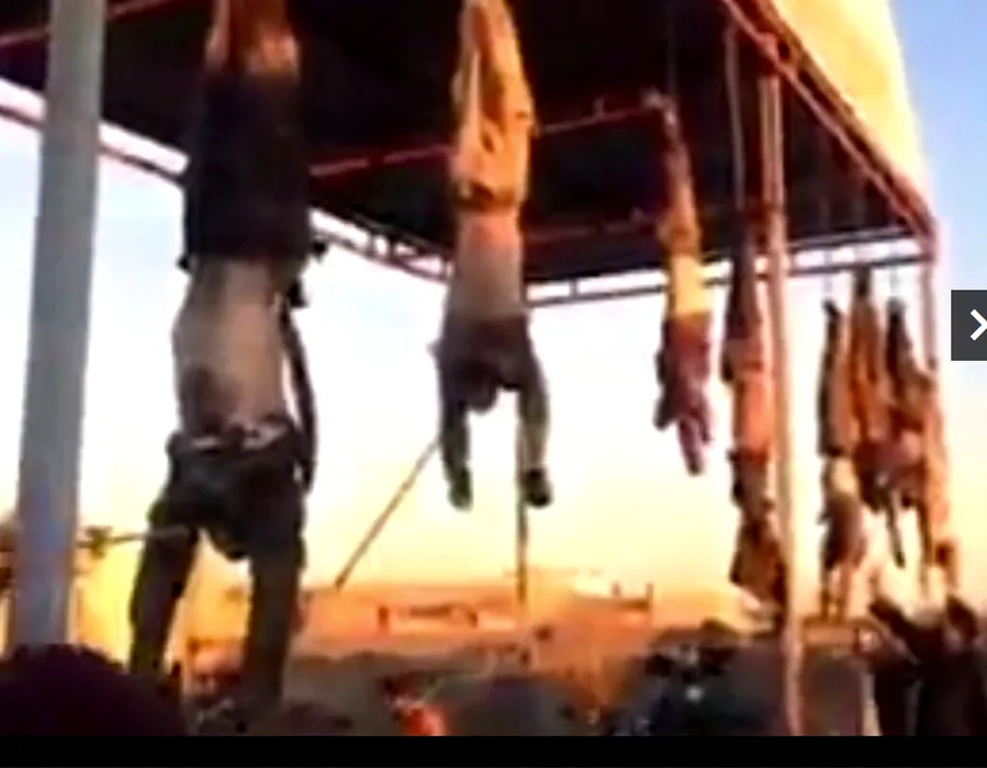 Scene macabre într-un oraș irakian: opt cadavre suspendate de un cadru metalic. Atenție, imagini dure!