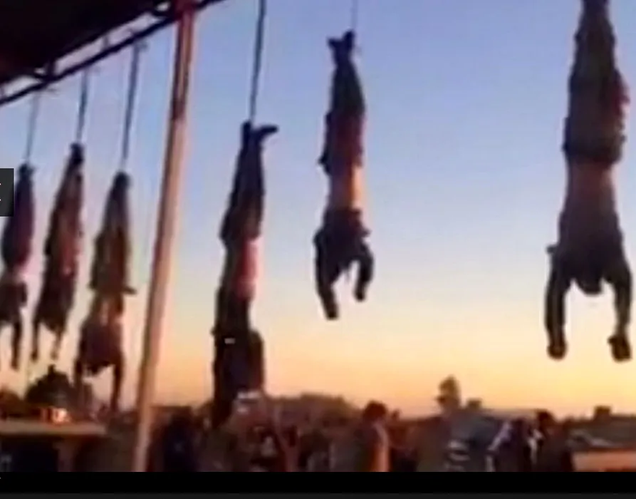 Scene macabre într-un oraș irakian: opt cadavre suspendate de un cadru metalic. Atenție, imagini dure!