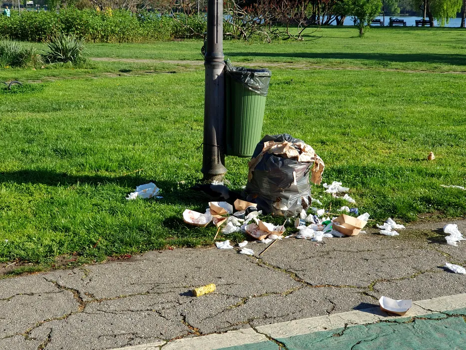 Scene oribile în Parcul Herăstrău. Gunoaiele dau pe afară, spre „deliciul” ciorilor, care au invadat grădina din nordul Capitalei