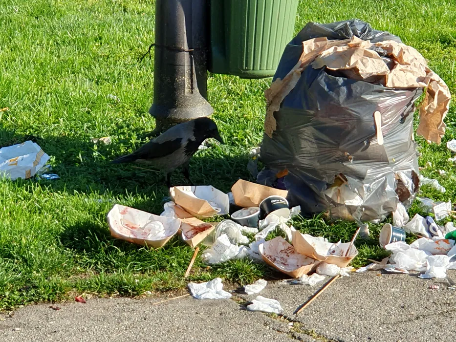 Scene oribile în Parcul Herăstrău. Gunoaiele dau pe afară, spre „deliciul” ciorilor, care au invadat grădina din nordul Capitalei