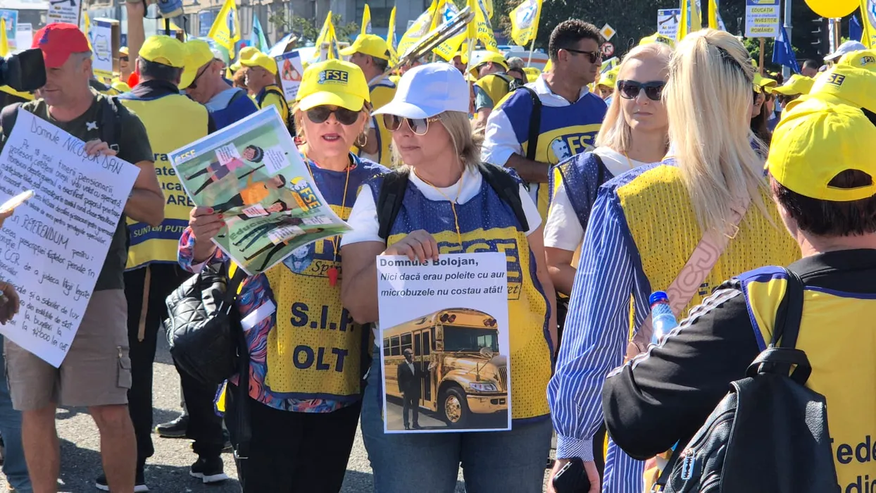 Școala a început cu 10.000 de profesori în stradă. Nicușor Dan și-a dus copilul, pe vârfuri, la școală. Protestul se reia pe 5 octombrie