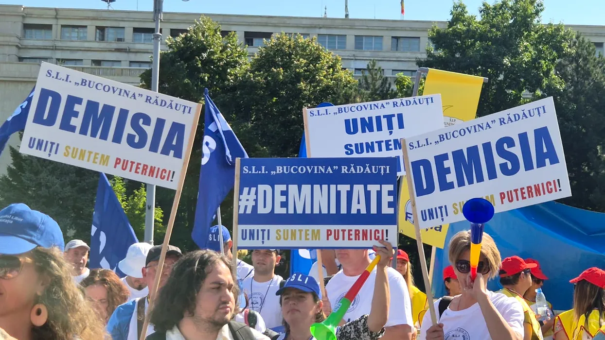 Școala a început cu 10.000 de profesori în stradă. Nicușor Dan și-a dus copilul, pe vârfuri, la școală. Protestul se reia pe 5 octombrie