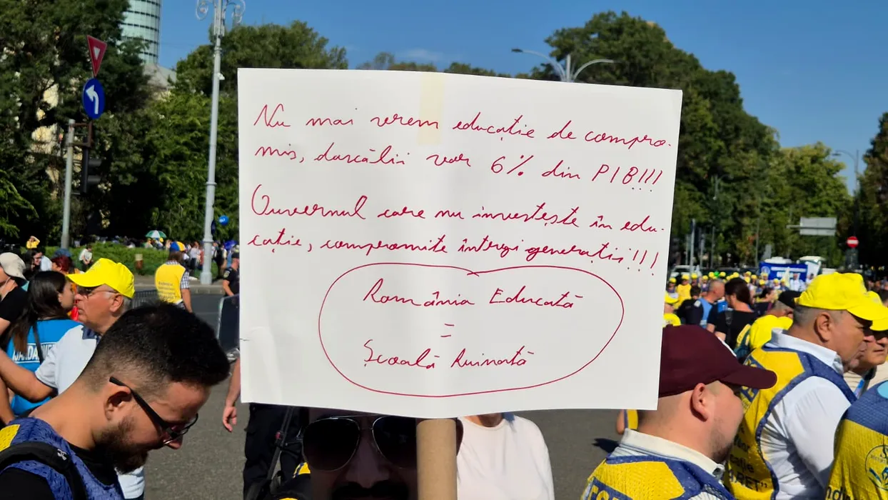 Școala a început cu 10.000 de profesori în stradă. Nicușor Dan și-a dus copilul, pe vârfuri, la școală. Protestul se reia pe 5 octombrie