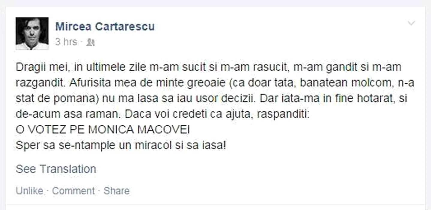 Scriitorul Mircea Cărtărescu: „Da, voi merge la vot”. Cu cine spune că va vota