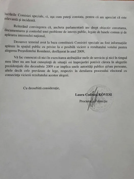 Scrisoarea în 15 puncte, trimisă de Kovesi comisiei pentru alegeri. Întrebarea esențială la care nu a răspuns șefa DNA