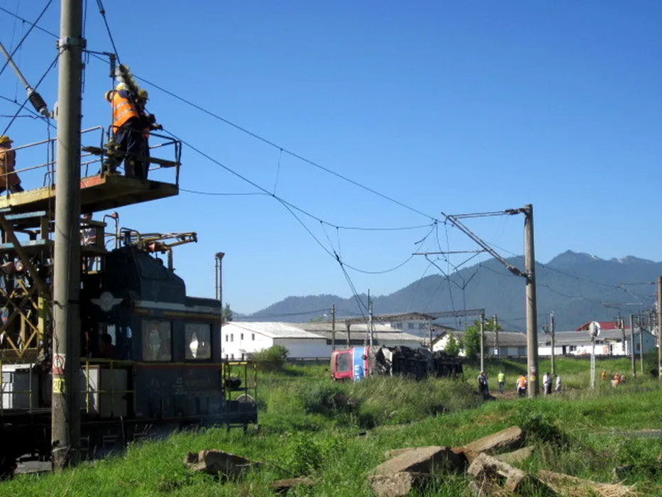 Se întâmplă în România, la Brașov: o locomotivă a luat-o la vale și s-a răsturnat după ce mecanicul coborâse să-și facă nevoile. GALERIE FOTO