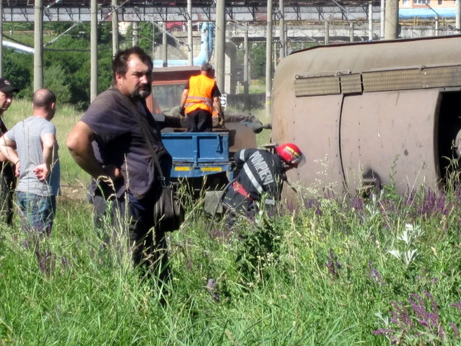 Se întâmplă în România, la Brașov: o locomotivă a luat-o la vale și s-a răsturnat după ce mecanicul coborâse să-și facă nevoile. GALERIE FOTO