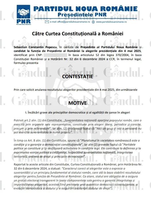Sebastian Popescu a depus la CCR o contestație pentru anularea alegerilor