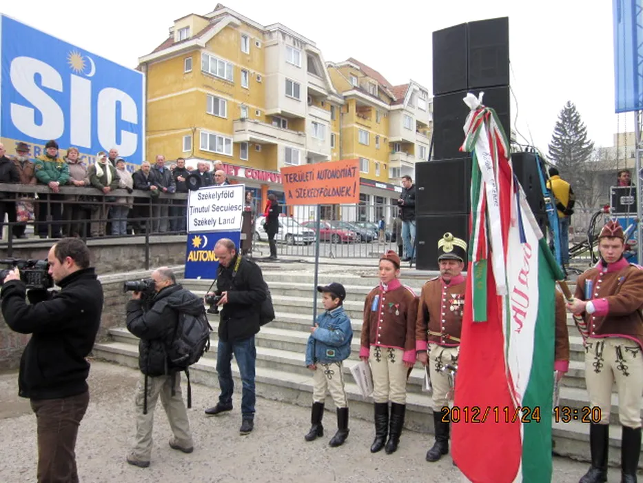 GALERIE FOTO: Sfântu Gheorghe. Autonomia Ținutului Secuiesc „proclamată” cu o pancartă „La revedere, România”