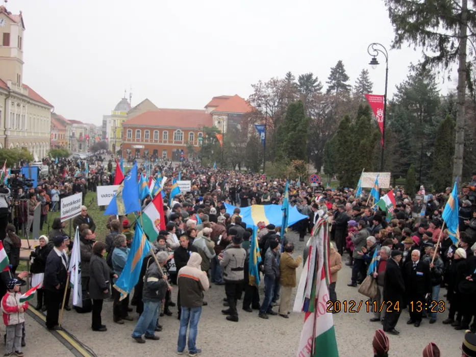 Sfântu Gheorghe. Autonomia Ținutului Secuiesc „proclamată” cu o pancartă „La revedere, România”