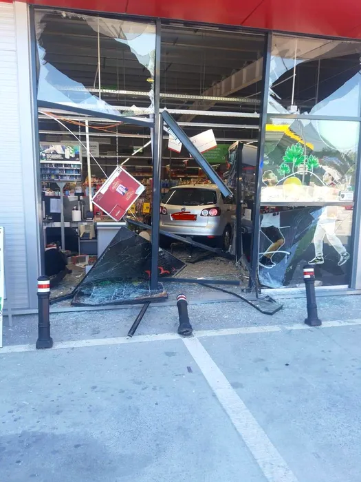 Și-a „parcat” mașina direct în magazin, într-un Mega Image, la Snagov! Imagini uluitoare cu accidentul produs de o bătrână de 77 de ani!