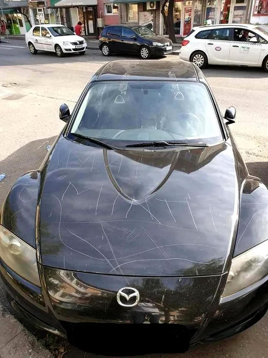 Și răzbunătoare și agramată. Fosta iubită i-a zgâriat capota mașinii și i-a scris un mesaj „dureros” – FOTO