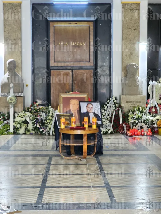 GALERIE FOTO: Sicriul cu trupul neînsuflețit al PROFESORULUI Corneliu Bîrsan a fost depus în holul de onoare al Facultății de Drept a Universității din București